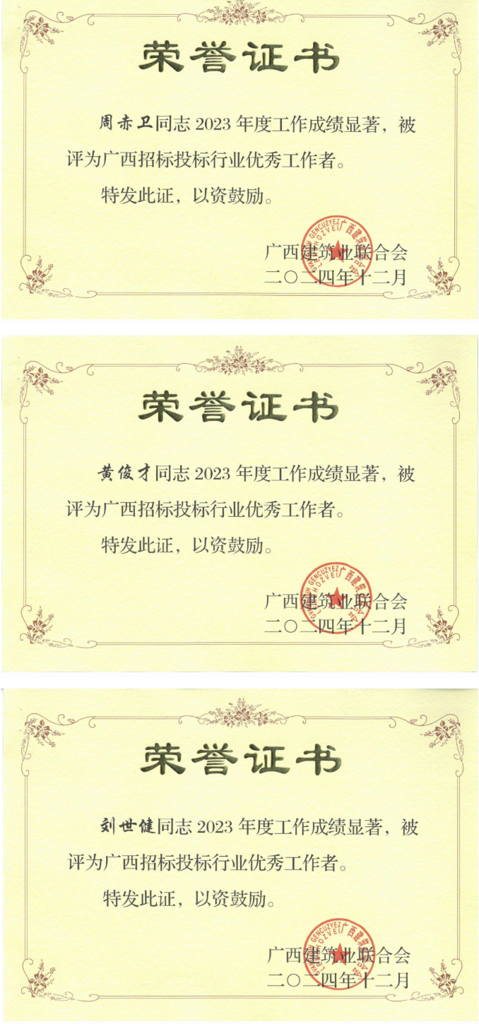 近日,廣西建筑業聯合會發布了《關于2023年度招標投標行業優秀企業和優秀工作者名單的通知》,恒基咨詢憑借在招標投標領域的優秀表現,榮獲2023年度“廣西招標投標行業優秀企業”稱號。同時,公司4名員工獲評“廣西招標投標行業優秀工作者”。
