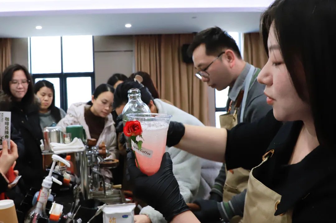 隨后,DIY制作環節將活動推向高潮。女職工們在咖啡師的指導下,親自上手研磨咖啡豆、沖泡咖啡、調氣泡水。雖然手法生疏,但那份專注與熱情卻感染了每一個人。在輕松愉快的氛圍中,一杯杯獨具匠心的咖啡、氣泡水作品應運而生,每一杯都承載著女職工們的創意與祝福。